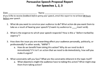 As defined by Lloyd Bitzer (1980), the rhetorical situation is a specific combination of three elements: rhetorical exigence, rhetorical audience, and constraints. In a way, a persuasive speech contains the rhetorical exigence (what you want to change), your rhetorical audience (people who are capable of positively modifying what you want to change), and the constraints (what stops them from doing so). By understanding the constraints and answering the question “What is in it for [the audience]?” we can tailor the message specifically to our targeted audience to persuade them to take action. This leads to the next rhetorical theory of modes of appeals.