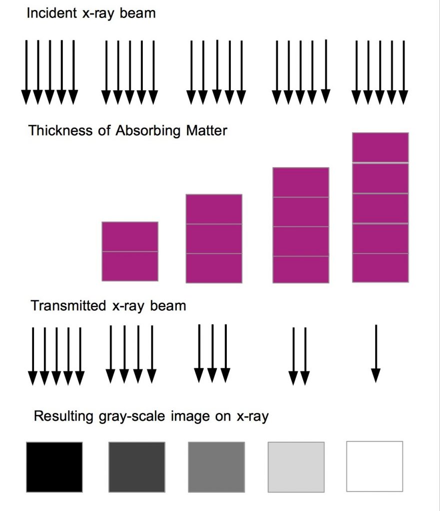 Fig 3.5 X-ray Image Creation and Display by Dr. Brent Burbridge MD, FRCPC, University Medical Imaging Consultants, College of Medicine, University of Saskatchewan is used under a CC-BY-NC-SA 4.0 license.